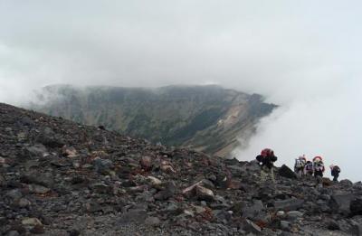 以前は浅間山への一番近い山は黒斑山、2404mでしたが、数年前より噴火が沈静化し、今ではもっと近い、前掛山、2524mまで近づくことができます。
