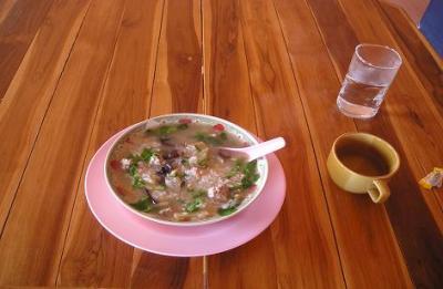ゲストハウスでは食事が出ないので、町で食べる必要があります。この町はバス(ソンテウ)の終点と、その手前のツーリストポリスのある街区に分かれていて、その両方にちょっとした食堂、中華料理店もあります。中国系の住民が多く、中華料理も美味しく食べられます。