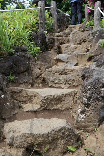 下の方と上の方ではアジサイの色や品種も違う。登りながらいろんなアジサイが見られるが、頑張って上まで歩いて行くのがおすすめ。上から見る景色もかなり迫力ある。