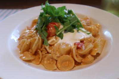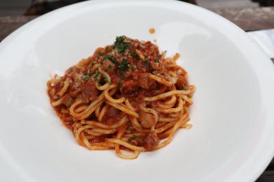 私はワンコ連れだったのでテラス席で。ランチメニューはすべてサラダ・ドリンク付き。シェフのおすすめパスタとローストビーフバケット添えをいただきました。モチモチの生パスタでソースは深みのある美味しさ。ローストビーフも新鮮なサラダも満足でした。