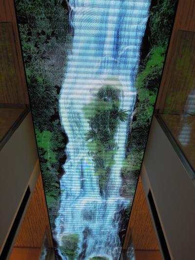 チームラボによるウォールアートは、仮想の三次元空間に岩を立体的につくり、その岩に水を落下させているんだそう。