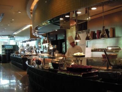 店内はロビーと連なる開放的な空間。お料理はローストビーフをはじめイタリアンやアジアン、お蕎麦や天ぷらなどとにかく多種多彩。