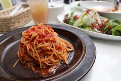 パスタはモチモチしていて、トマトソースは酸味の効いた本当にシンプルな味。