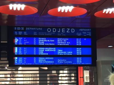 プラハ中央駅から発車する列車のホーム(何番線)は、発車のおよそ10分前にならないと確定しないのです。