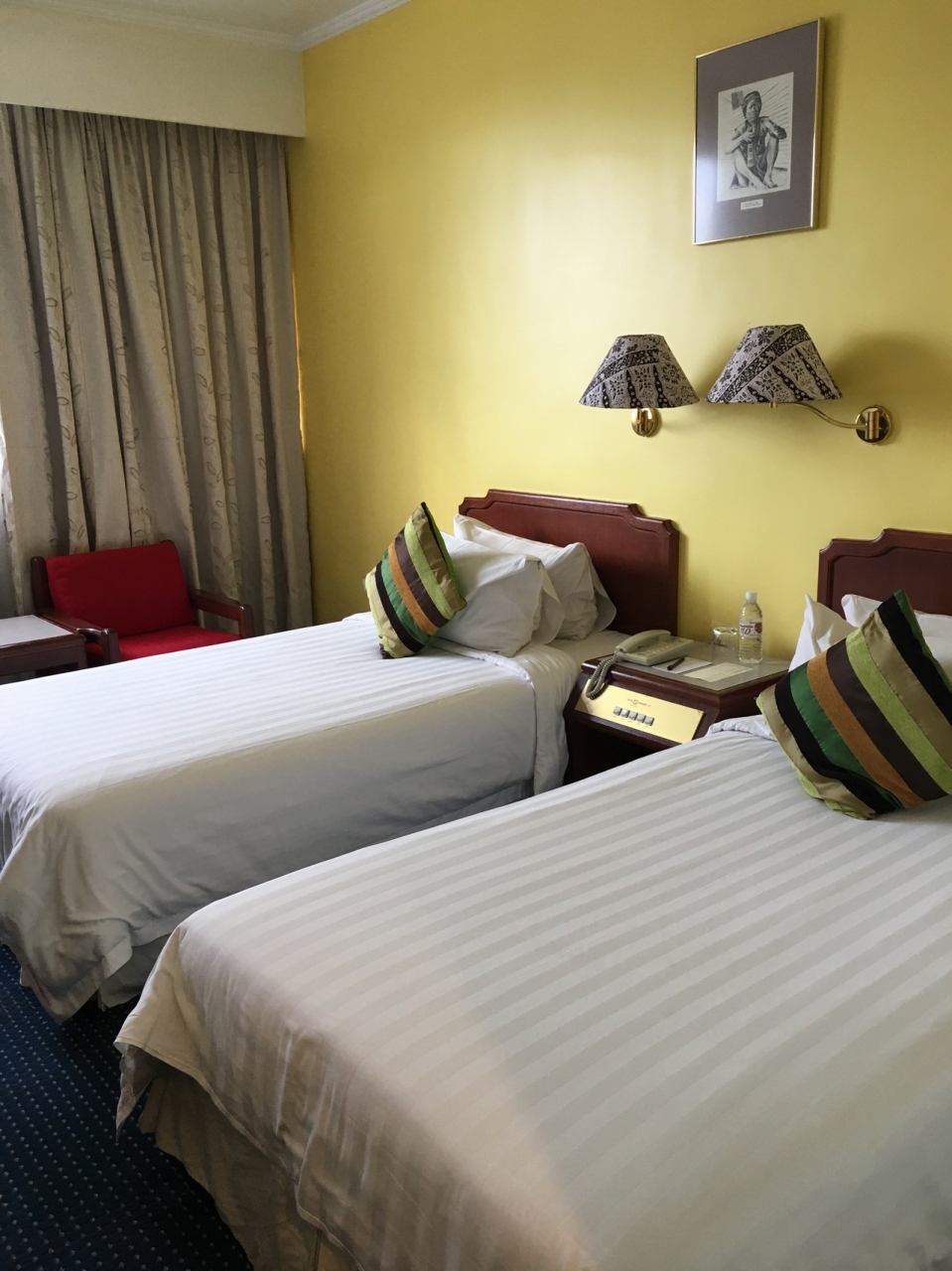 屋台街からも近く、有名なガヤストリートのマーケットに行くにも、ウォーターフロントにも15分くらいで到着できます。コタキナバルの町を歩いて回りたい人にはとても良い立地だと思いました。ホテルの前の大通りには信号がなく、ビュンビュン走る車を避けて渡ります。とても危険ですが、それがこの国の一般的な道の渡り方のようで、ガイドさんからも気をつけて渡るようにと話がありました。ホテルの部屋は清潔です。ただ、シャワーとトイレの境目にある衝立が、元々隙間のあるアクリル板なので、1人が浴びるとトイレ周りが水浸しになるのは困りました。