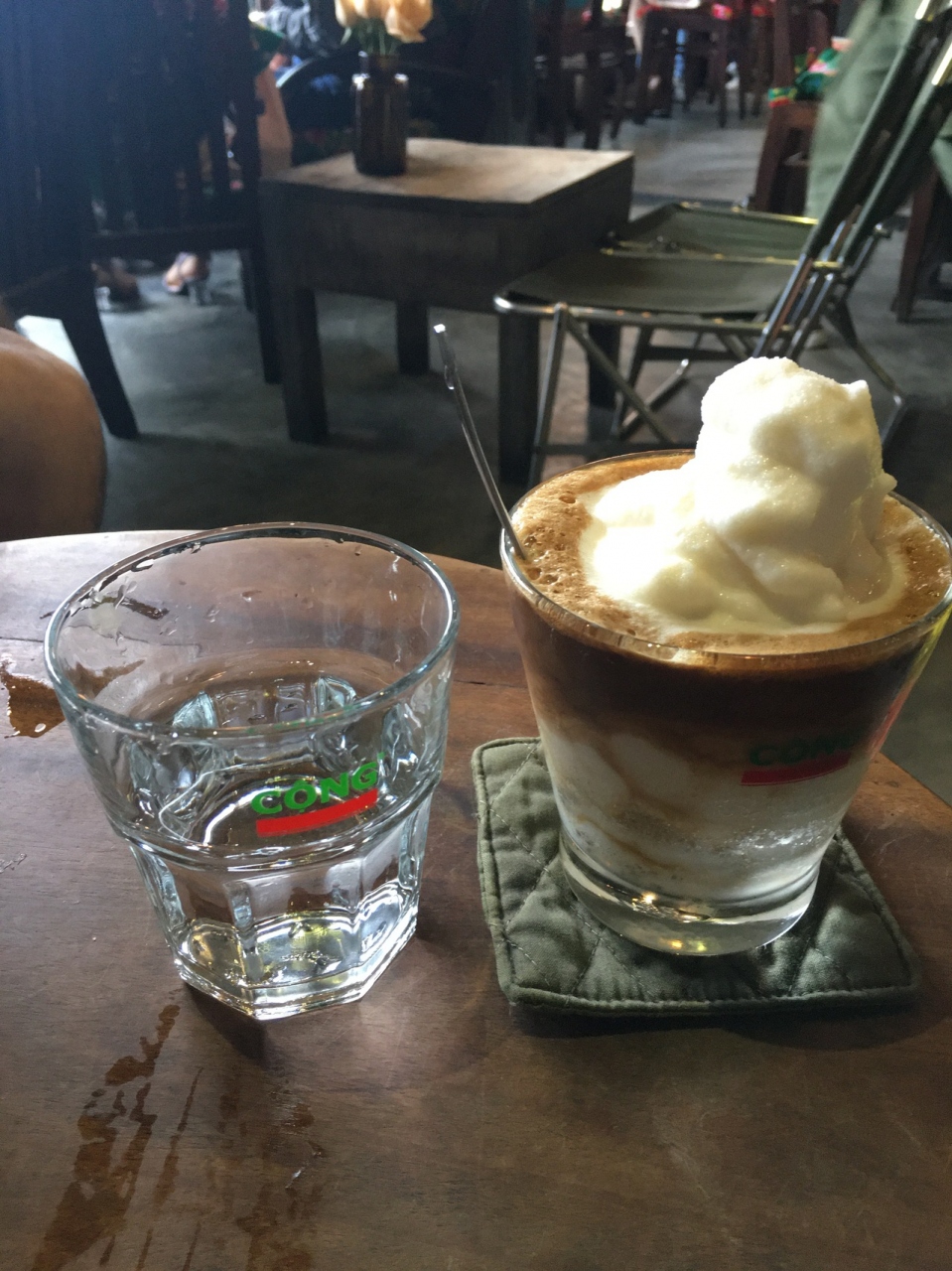 ホーチミンのタンソンニャット空港の国内線で、セキュリティチェックを終えた所にあります。クレジットカードが使えます。ベトナムコーヒーのアイス。甘いけどちょうどよい甘さで美味しいです。これとペットボトルのジュースで日本円で96000VND(480円)くらいでした。空港値段なので、かなりお高めです。