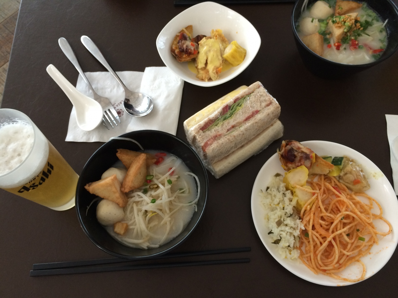 初めてプライオリティパスを使って海外の空港ラウンジを利用しました。事前に調べていましたが、おそらく搭乗口からは遠く離れているだろうと思って、早めに空港に到着すると、早すぎてチェックインまで一時間ほど待ちました。チェックインも済み、ゲートが201番と出ました。ゲート1と40のところにラウンジはそれぞれあるらしく、少しでも近い40を選びました。バニラエアのチェックインは第二ターミナル、搭乗口はすべて第一ターミナルにあるので、シャトルで移動です。シャトルも搭乗口によって駅が別れており、今回は40番台のラウンジに行くため、最初の駅で降り、利用後また乗ってもう一つ先の駅まで行きました。40番ゲートに行く直前にある上りエスカレーターでもう一階上がると、プラザプレミアムラウンジがあります。ユナイテッド航空のラウンジが工事中らしく、そのお客さんも受け入れていました。プライオリティパスをそれぞれ出して、サインをしていざ入室。景色もよく、きれいなラウンジです。美味しそうな食事、デザートがたくさんあります。フォーと魚のつみれが入ったどんぶりは、その場で作ってくれます。ドリンクも生ビール、缶ビール、ソフトドリンクがそろっています。ビールとおいしい食事を楽しんでから出発しました。