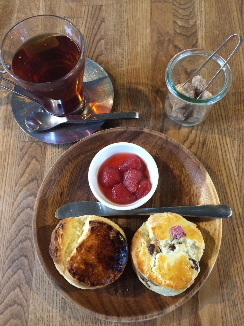 スコーンと紅茶を楽しみたくて訪れました。金町駅からがとても迷いました。マンションや住宅がたくさんある中に、やっと見つけてほっとしました。お昼過ぎだったのでそんなに混んではいませんでしたが、長居する奥様達が会話を楽しんでいました。スコーンを二つ選べて、お茶も着いています。イチゴジャムをつけて食べるようでしたが、スコーンにはクロテッドクリームが欲しかったな、と少し思いました。お店の雰囲気はとても落ち着けてよかったです。