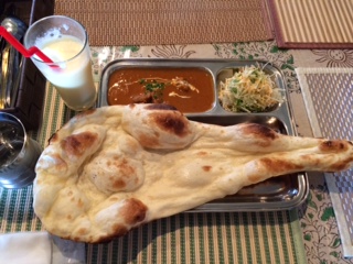 長沼町に新しくインド・パキスタンカレーのレストランができたとのことで行ってきました。11時のオープン少し後に着きましたが、外の駐車場はほぼいっぱいです。店内にはインドの方と思しき外国人の店員さん、厨房でも外国の方が調理中です。かわいらしく清潔感のある店内で、出された水もよくわかりませんが、抗酸化作用がある特別なお水だそうです。メニューには実に様々なカレーの種類が載っています。北海道だけあってスープカレーもあるようです。ナンは二種類、プレーンナンとチーズナン。このチーズナンはとても評判がいいそうです。顔二つ分くらいある大きなプレーンナンとラムカレーを注文し、マンゴーラッシーもつけました。お値段は郊外なので、札幌と比べるととても安い!これで850円です。味も程よく辛く、ナンもおいしく大満足です。母はチーズナンを注文し、食べきれずに持って帰りたいと店員さんに頼むと快くオーケーしてくれました。また訪れたいお店です。