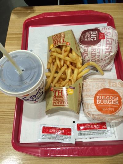 いろいろ食べましたが、結局キムチの味になってしまう~と思い、そうではないお肉が食べたくて、ロッテリアへ。おいしかったです!プルコギが入っていました。濃い味ですが食べがいのあるハンバーガーでした。ポテトも揚げたてでホクホクいただきました。