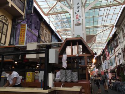 チャイナタウンのフードストリートは最強でした。これでもかというほど、おいしそうな料理が並んでいます。中華、マレー料理、インド料理などなど。何をどこの店で注文しようか迷いますが、並んでいるところを狙うのがよい、とどこかで仕入れた情報の元、何人か並んでいるお店を選びます。それぞれ「牡蠣の卵炒め」と「フライドホッケンミー」なるものを注文し、近くのセブンイレブンで調達したレモン味のタイガービールをもってテーブルでいただきました。おいしくておいしくて、後日再度ここを訪れてバクテーという料理もいただきました。
