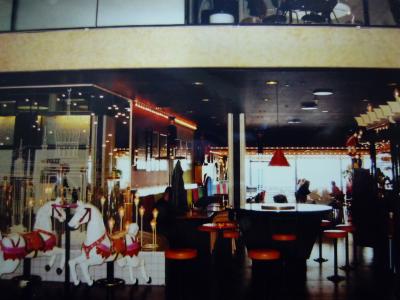 カフェの前にメリーゴーランドのオブジェがあるなど、居心地のよい空間。