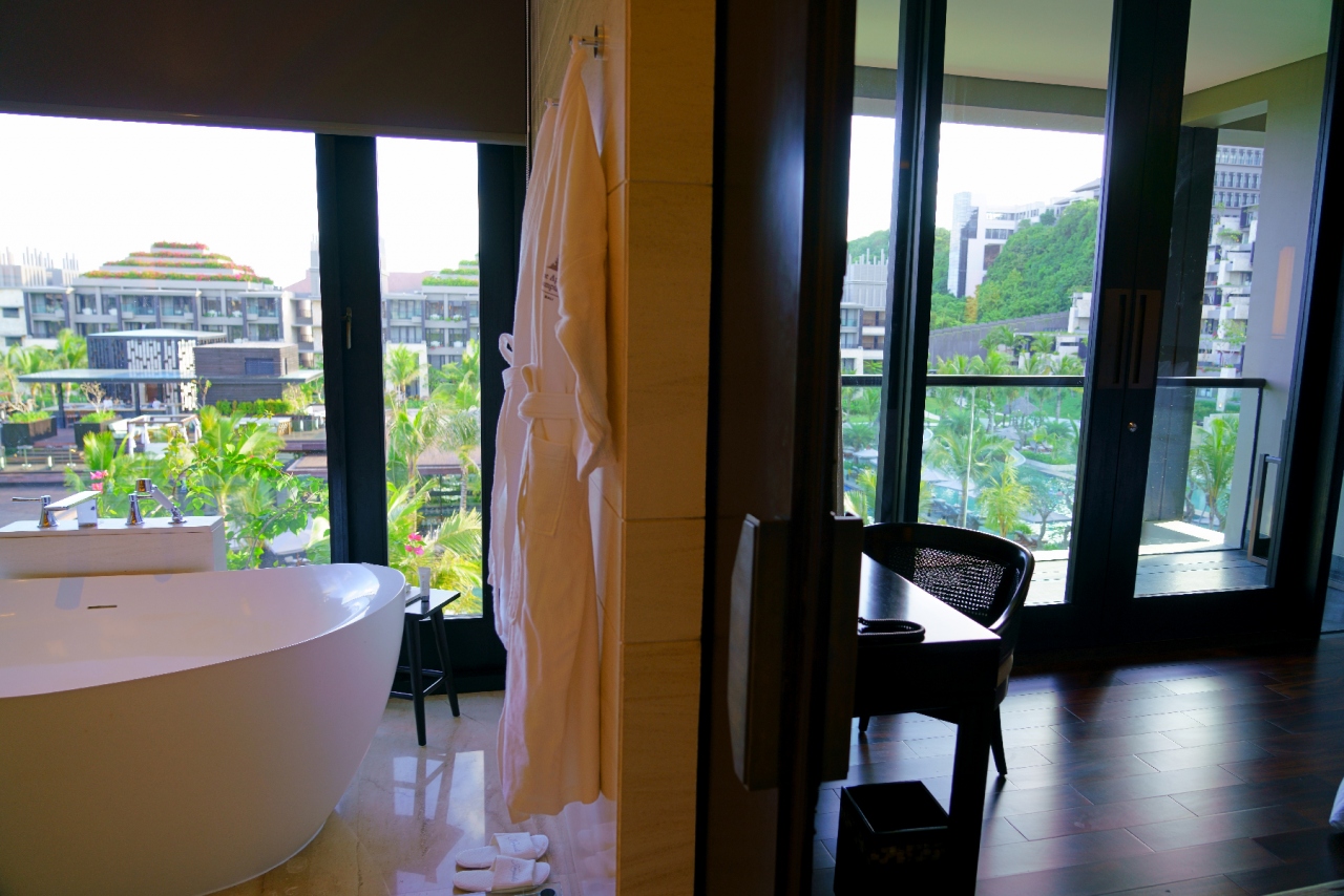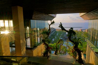 崖の上からインド洋を見下ろす吹き抜けのロビーは圧巻、隣のリッツカールトンをも凌ぐ壮大・爽快さです。外観、内装は素材・デザインともにいいのですが、施工業者に問題があるのか、細部の作りこみの雑な面が目につきます。クラブラウンジもクリフ側にあって景色を楽しむことが出来ますが、フードのバリエーションは多くはありません。現時点ではソフトオープン期間中でグランドオープン時には、諸々の問題も解消されるのかもしれませんが、その分、アーリーバードプライスの設定になっていますので割安価格でハイグレードの部屋に宿泊できるため、コストパフォーマンスは非常に高いと思います。