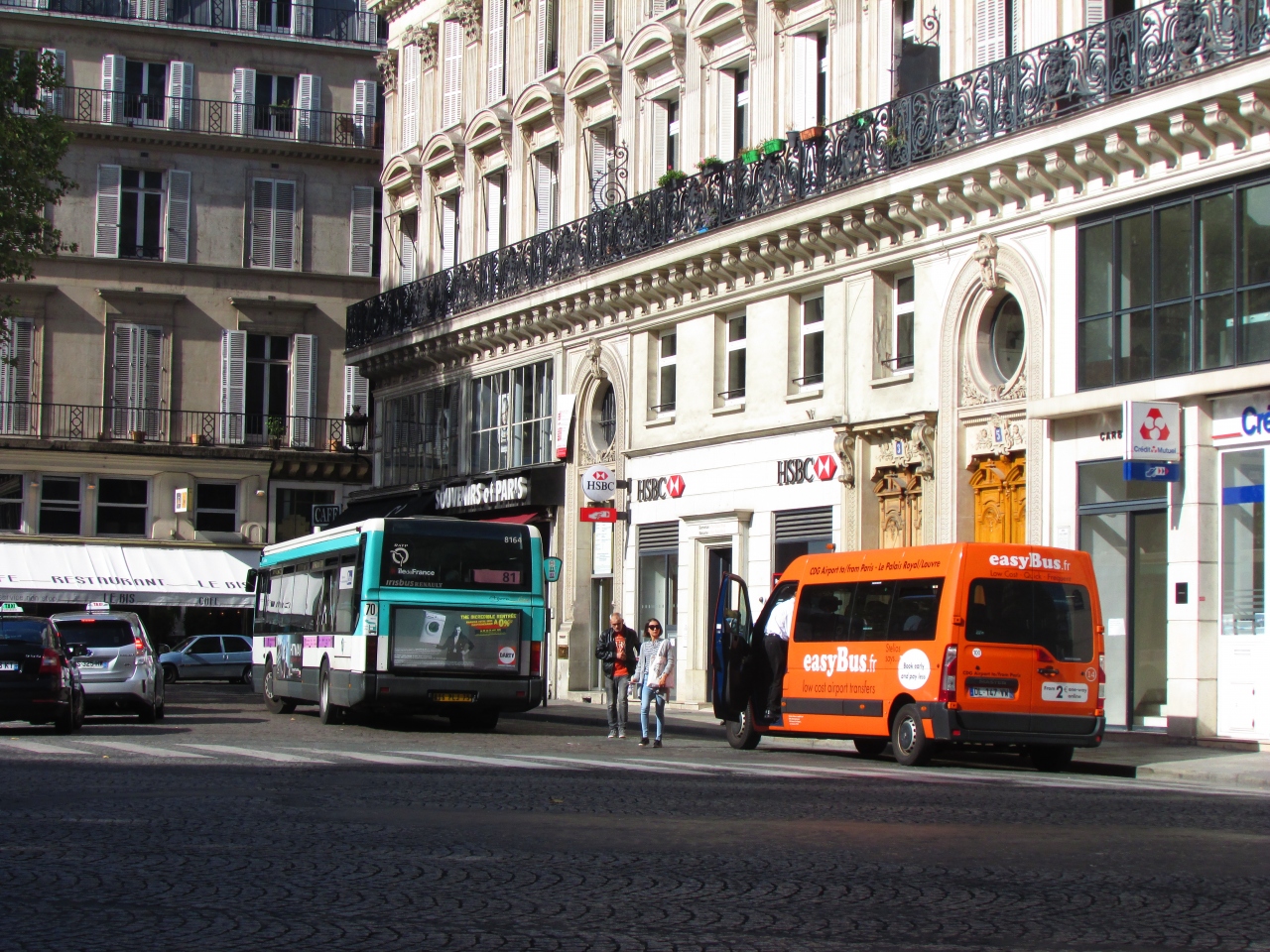 RATPバス(市バス)の「パレロワイヤル・コメディーフランセーズ」のバス停(アンドレ・マルロー広場にある)21、81番のバス停の近くに立っていれば30分おきにオレンジ色の小型バスがきます。