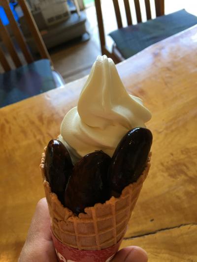 今年の7月の尾瀬ヶ原ハイキング の帰りに立ち寄りました。こちらの花豆のソフトクリームが食べてみたかったからです。混ぜ込んであるタイプが多いなかこちらはバニラソフトの上に甘く煮たお豆が乗っています。お上品な甘さで美味しかったです。