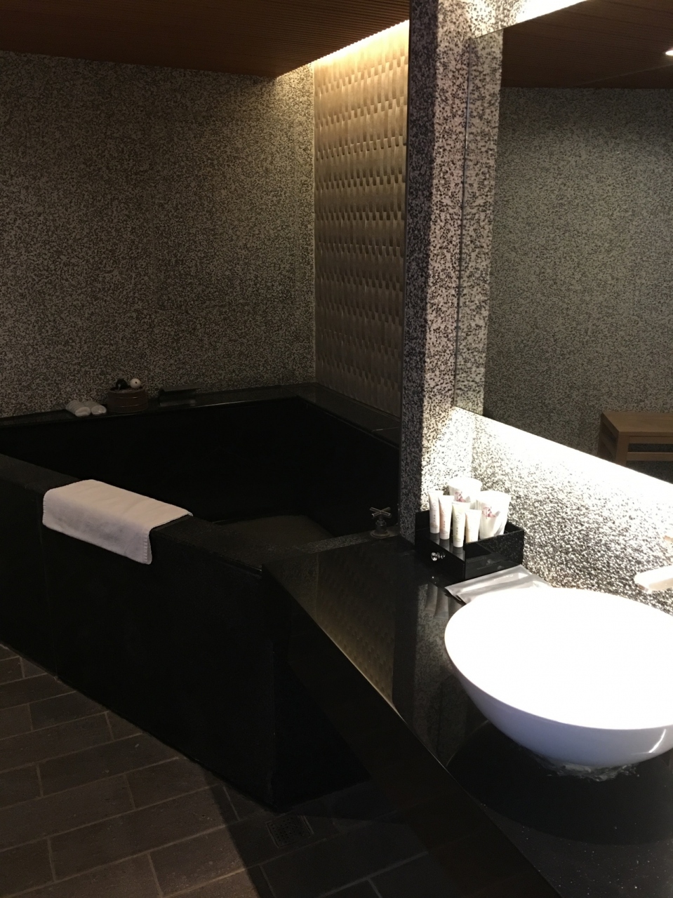お部屋には大きな浴槽があり温泉がでます。サウナ、シャワー室もあり贅沢な作りでした。