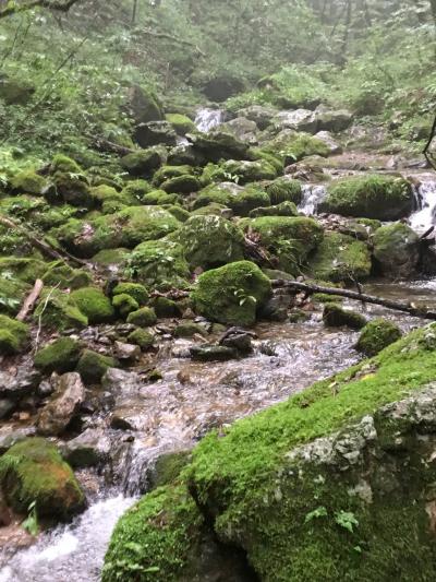 御岳山にレンゲショウマを見に行った後に行ってみました。天候が不安定で雨が降ったり止んだりだったため、ただでさえ、ぬかるんでいる山道がドロドロでした。ハイキングコースになっており、道はわかりやすかったです。岩場が苔むしていてなんとも幻想的でした。
