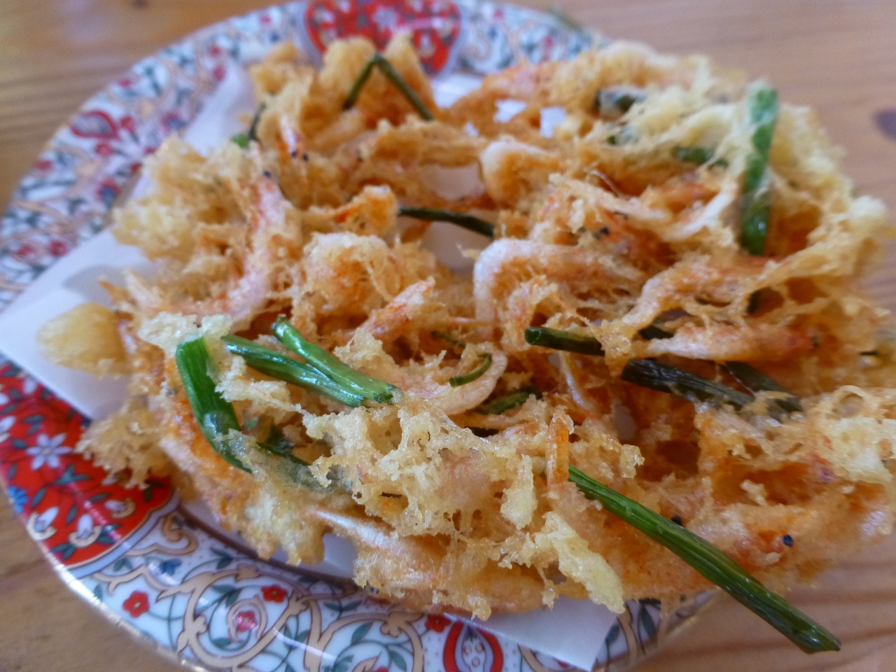 桜えびのかき揚げは、少し油っぽい。