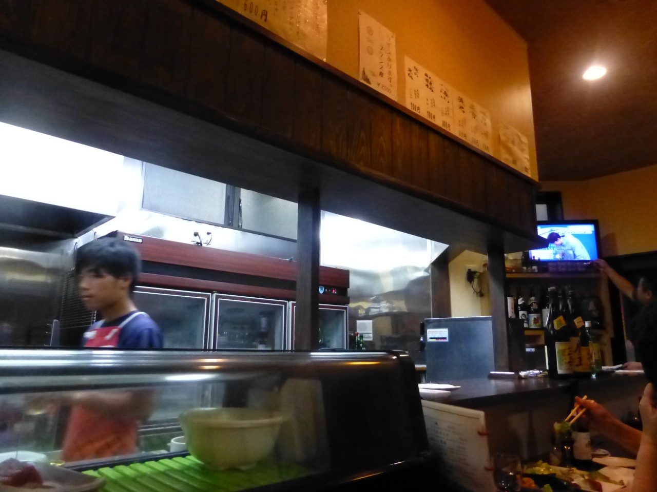 夜ですが、食事のお客さんが多いので、外向きカウンターの方が落ち着きます。