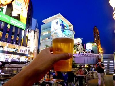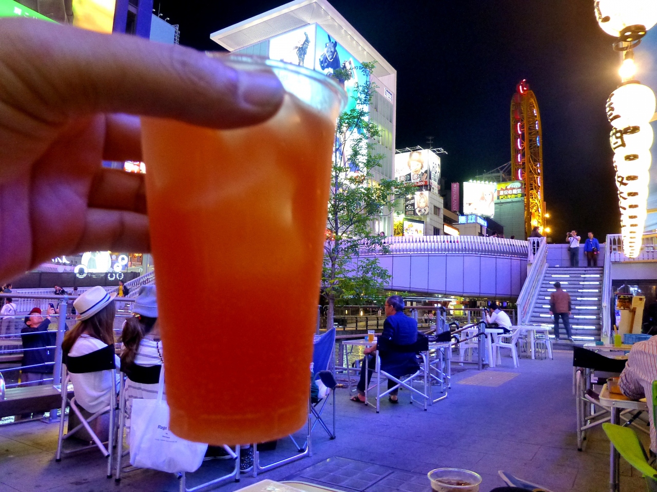 道頓堀をプラプラしてたら、川沿いで飲んでる人たちを発見!