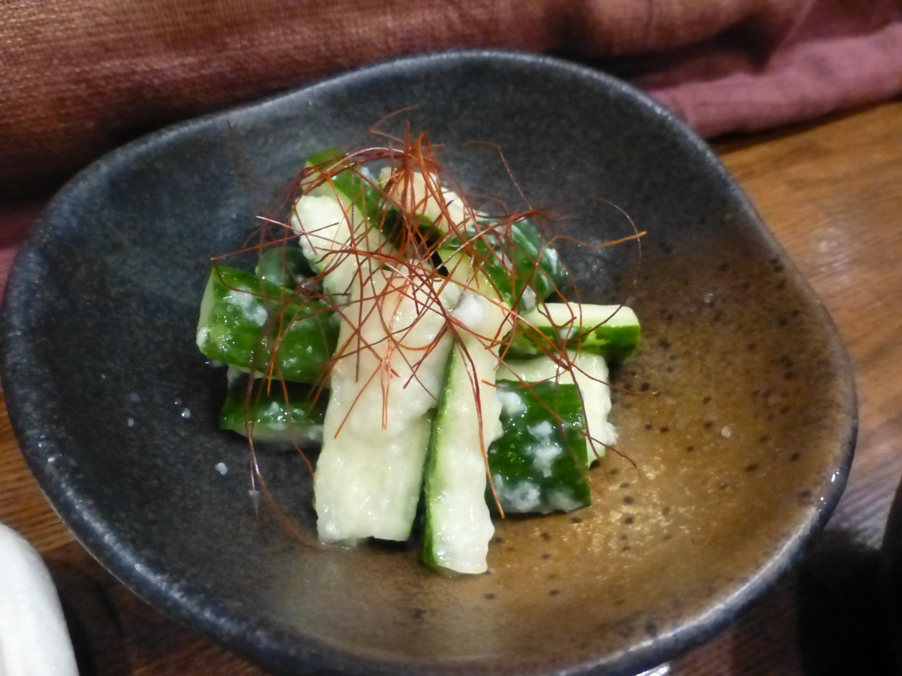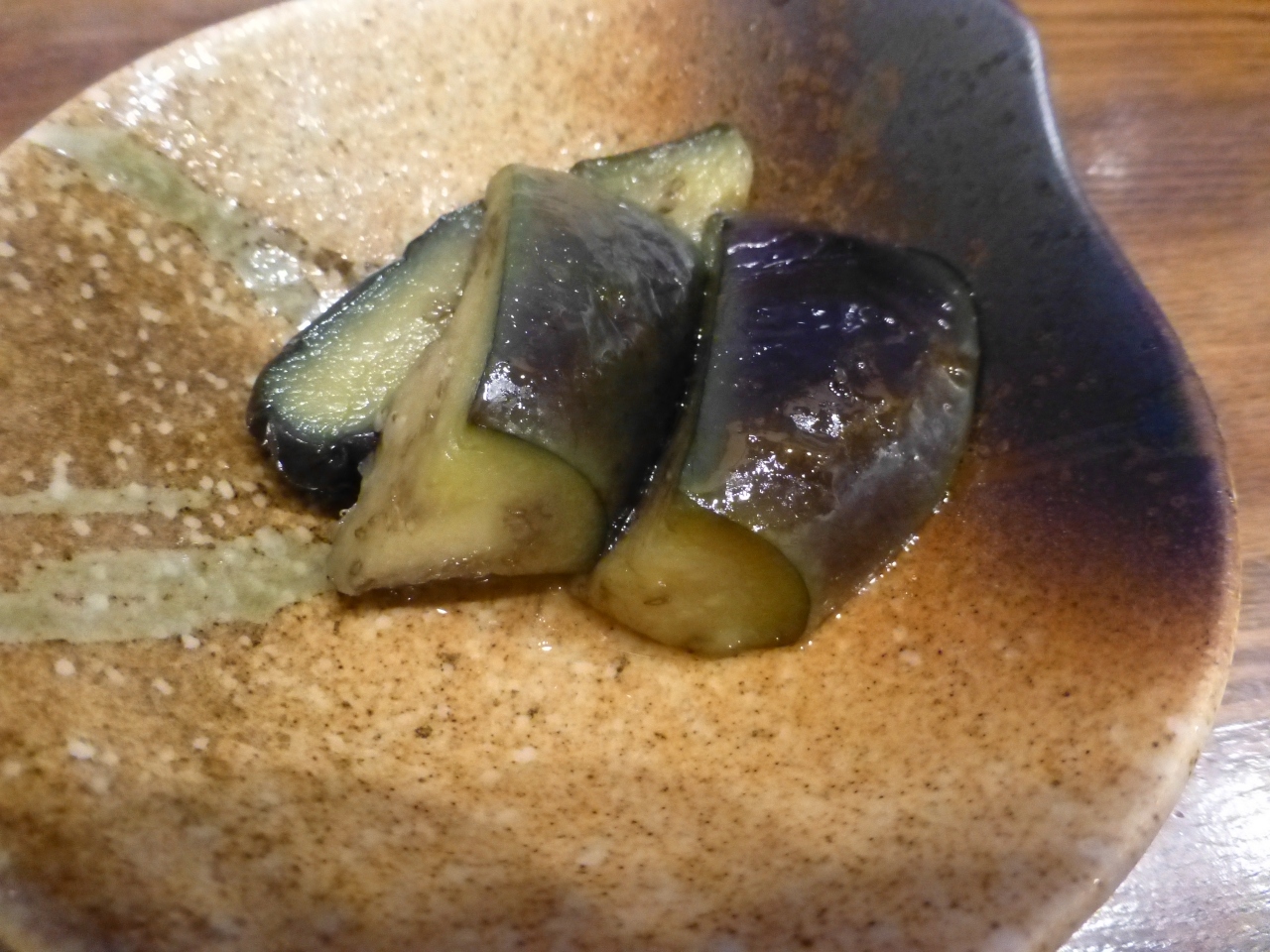 先ずは、お通しから。なすの煮浸しのようなもの、美味しい。