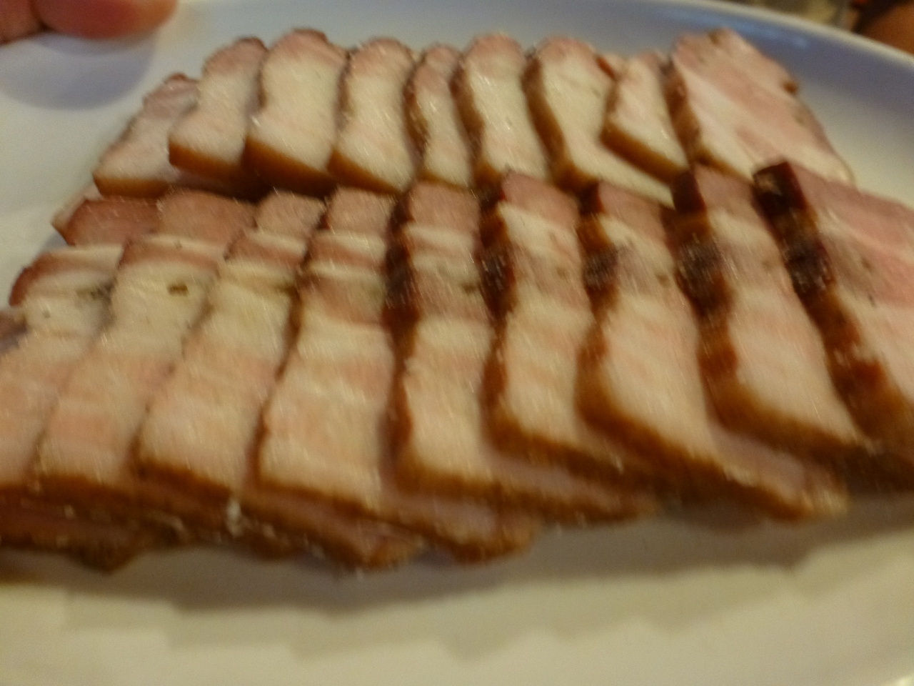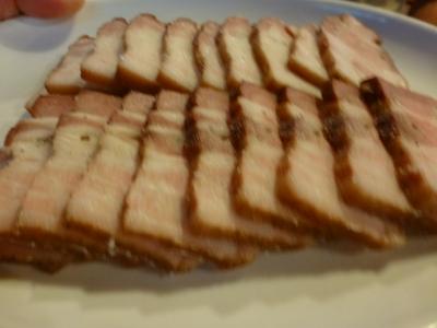 この店はいろいろな部位の豚肉を燻製にします。