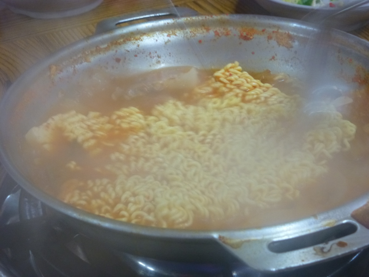 肉を食べた後の しめのポックンパもまた美味!