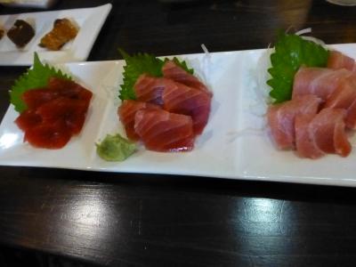 マグロ三点盛も美味しい。