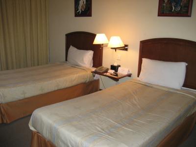 部屋はツインでした。広すぎず、狭すぎずで、夫婦2人だけで宿泊するにはちょうどよい広さでした。部屋、バスルームとも清掃がいきとどいており、清潔感も十分でした。