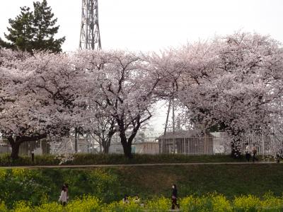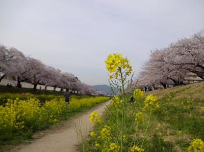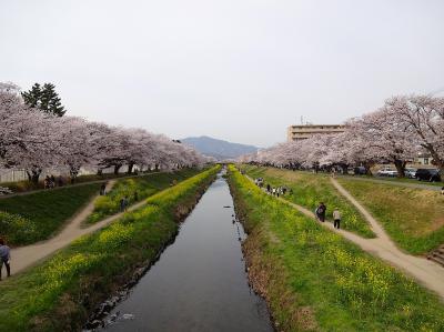 - 伊奈川を挟み、菜の花と桜の花が楽しめます