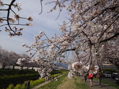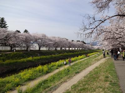 川の両岸に桜の気が立ち並び、川ベリには見事に菜の花が咲いてる「伊奈川堤」。
