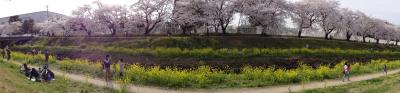 色んな桜の名所に行きましたが、こんなにキレイに菜の花と桜の花を同時に見られる所はありません。