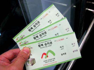 13/3/3の日曜日の夕方、宿泊ホテル「世宗ホテル」の前からタクシー(ワンメーターで行けます)でケーブルカー乗り場まで行き、一人W8,000の往復切符を買って、いざソウルタワーへ。