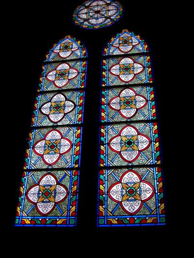 内部も広々として荘厳な印象です。ステンドガラスもキレイに輝きを放っています。