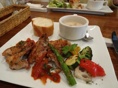 注文したのは、若鶏の皮ぱりグリル(1050円)と自家製キッチュのプレート(840円)。