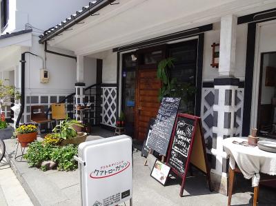 漆喰の蔵が建ち並ぶ中町通りの端にある小さなスペイン風のレストランです。
