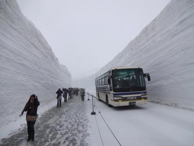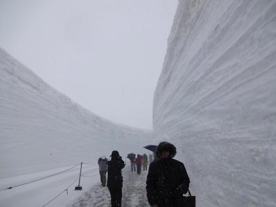 長野の大町側「扇沢」駅よりトロリーバスやケーブルカー、ロープーウェイを乗り継ぎ、この「雪の大谷」のある「室堂」までやって来ます。