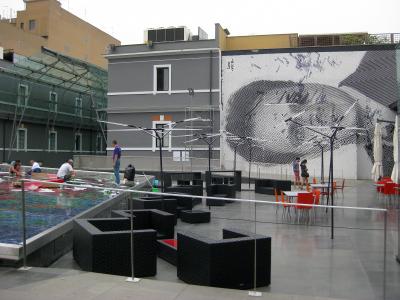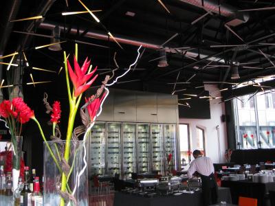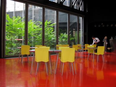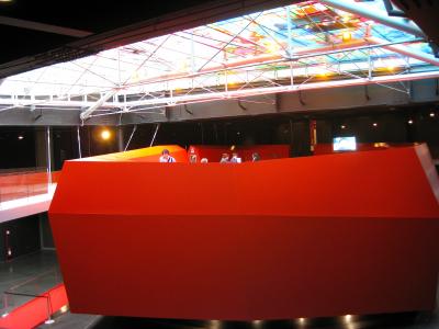 美術館の中に入った瞬間から目に止まるインテリアの素晴らしいこと。赤と黒とシルバーを基調にしたとてもモダンな造りで、その構造も面白い。