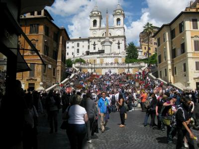 スペイン階段には、多くの恋人たちや家族など世界中から人が集まりいつもいっぱいです。