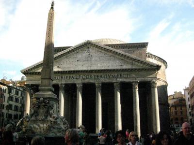 この「パンテオン」は、ギリシャ神殿を思わせる美しい建造物で、現存するローマ遺跡の中にあって最も保存状態がいいものだそうです。