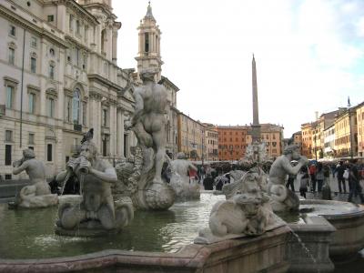 ローマの中では、かなり広い広場で、3つの有名な噴水があります。特に真ん中の噴水は、巨匠ベルニーニが作った「4大河の噴水」です。