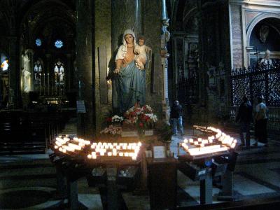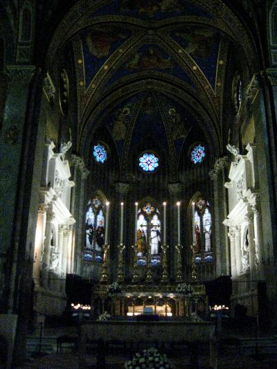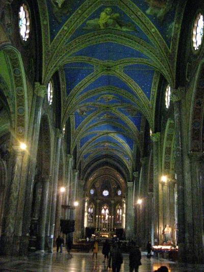 ローマで唯一のゴシック様式となる教会のようですが、どこがゴシック様式なのか、他の教会との違いがよく解りません。ただ、外からの地味な雰囲気とは異なり、中のイメージはブルーの天井のせいかも知れませんが、華やかで格調高く感じました。