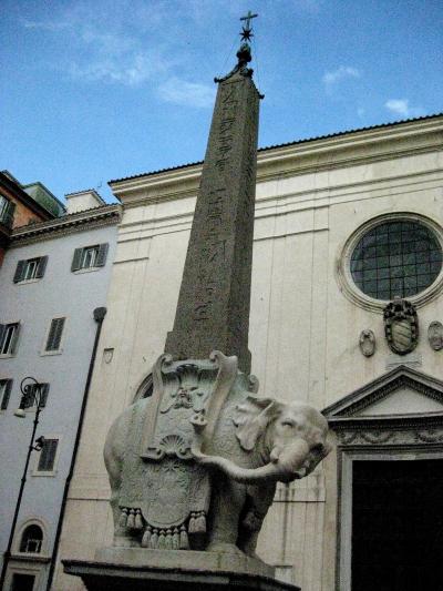 教会の前の、ミネルヴァ広場には、オベリスクを背負った象の彫刻があり、この象も巨匠ベルニーニが作ったもののようです。
