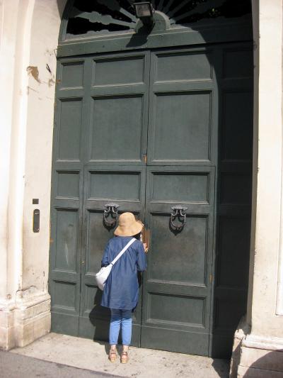何を覗くかと申しますと、扉の小さな鍵穴の先に見えるのは、サン・ピエトロ大聖堂のクーポラが、ハッキリ、クッキリ見えるのです。
