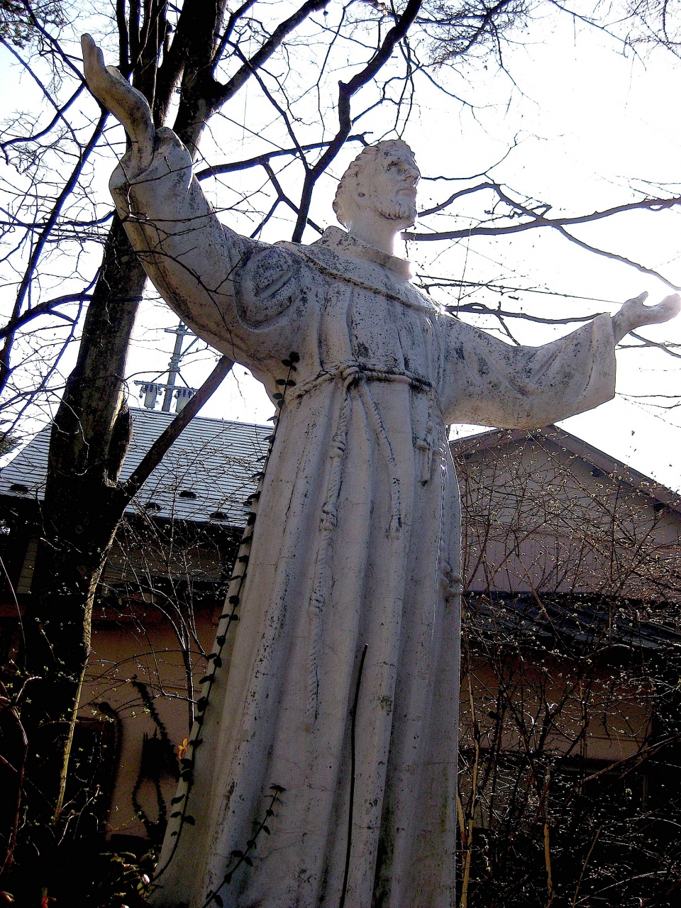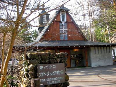 聖パウロカトリック教会は、旧軽井沢銀座の裏手にある三角屋根の教会です。