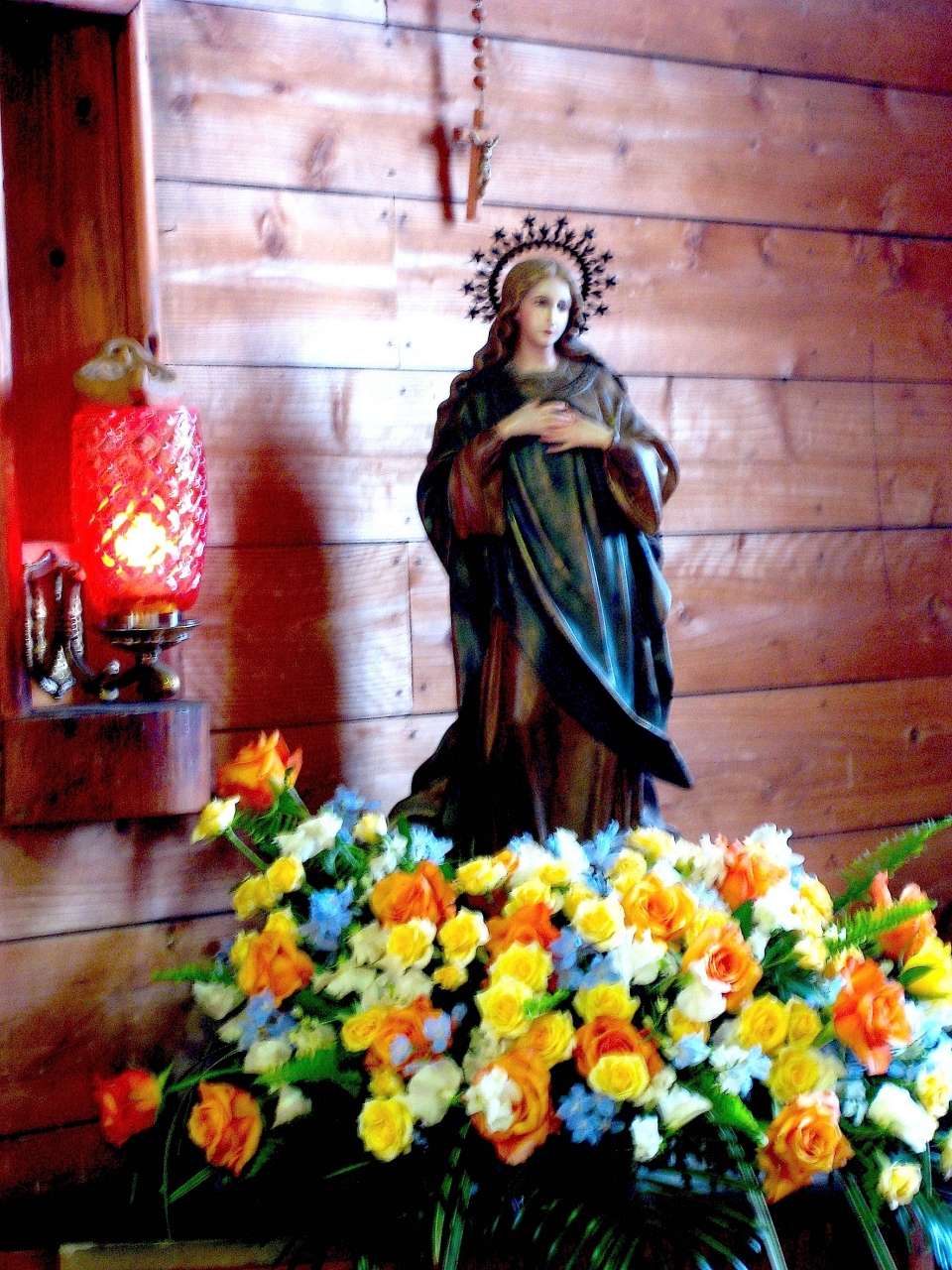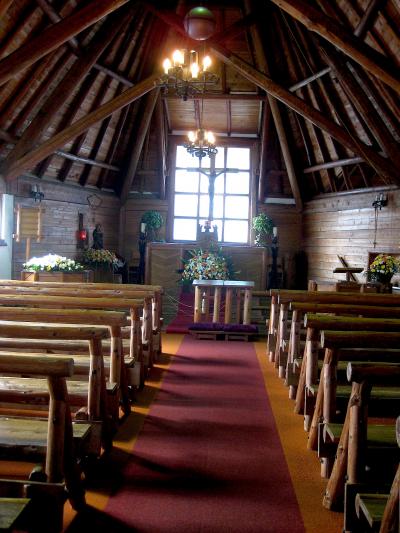 コンクリートと木材を組み合わせて造られた小さな教会ですが、