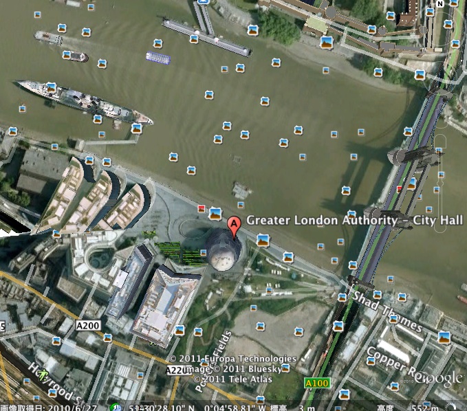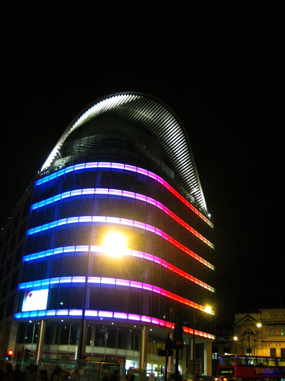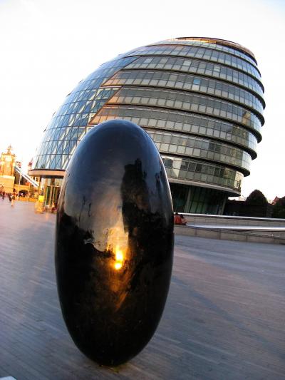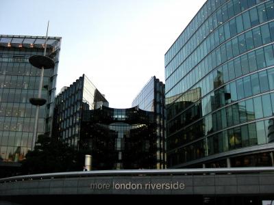 三角形のガラスを組み合わ、モザイク模様の壁面はブルーに輝き、ロンドンの街に異彩を放つモダンな建物。一度目にすると忘れられないロンドンの思い出となります。