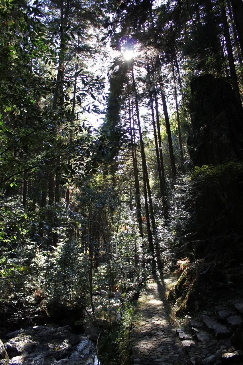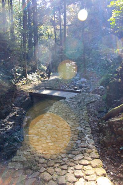 滝までの参道は石畳と小川が流れ、木々の中を心地よく歩いて行くことができます。