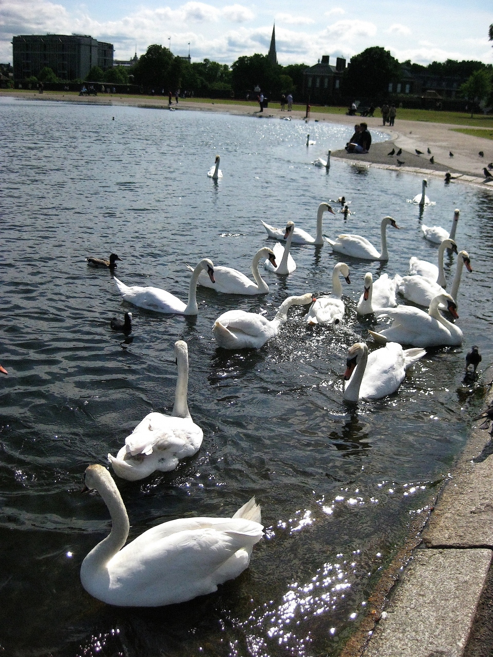 ラウンド池には、白鳥や鴨などの水鳥が戯れ、見ているだけで心が和む。