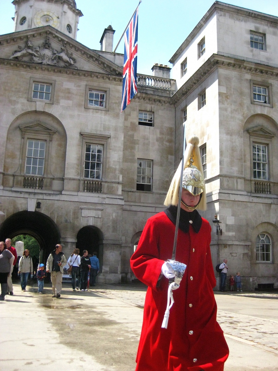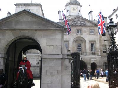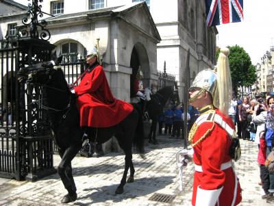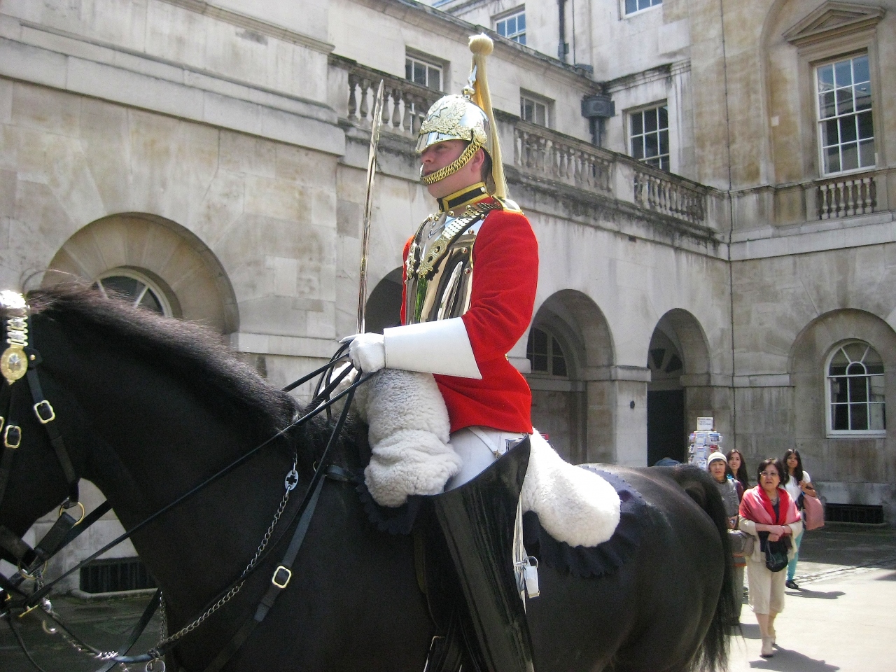 赤い制服のライフ・ガーズと青い制服のブルー&ロイヤルからなる騎兵隊がいるそうですが、見たのは赤い制服の騎兵隊。丁度、簡単な交替式があり楽しめました。